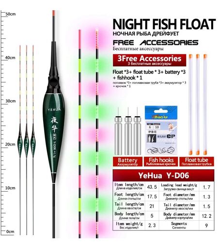 Flotteurs De Pêche Électriques Characterelectric,3 Pièces Gonflées,3 Pièces De Tube De Flotteur,1 Sac De Crochets,Shoous Boya,Bouy D'eau Douce,Accessoires De Pêche De Nuit - Type Y-D06