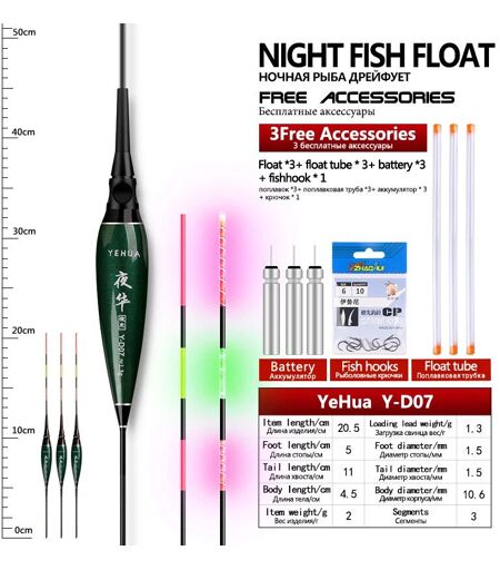 Flotteurs De Pêche Électriques Characterelectric,3 Pièces Gonflées,3 Pièces De Tube De Flotteur,1 Sac De Crochets,Shoous Boya,Bouy D'eau Douce,Accessoires De Pêche De Nuit - Type Y-D07