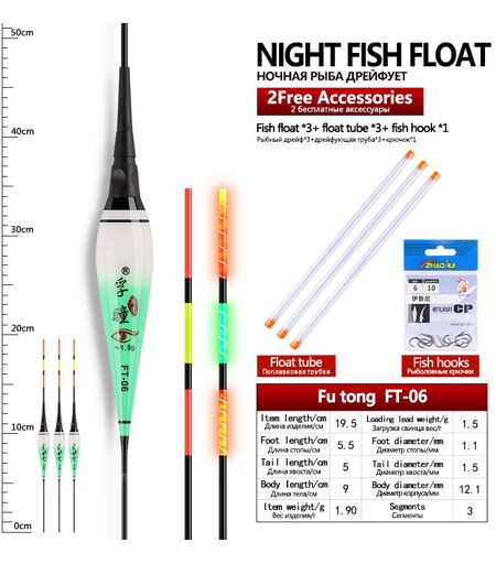 Flotteurs De Pêche Électriques,3 Tubes De Flotteur,1 Sac D'hameçons,Bouée De Nuit,Lac Et Rivière,Outils De Pêche Boya,Accessoires De Matériel,3 Pièces - Type Td-A Ft-06