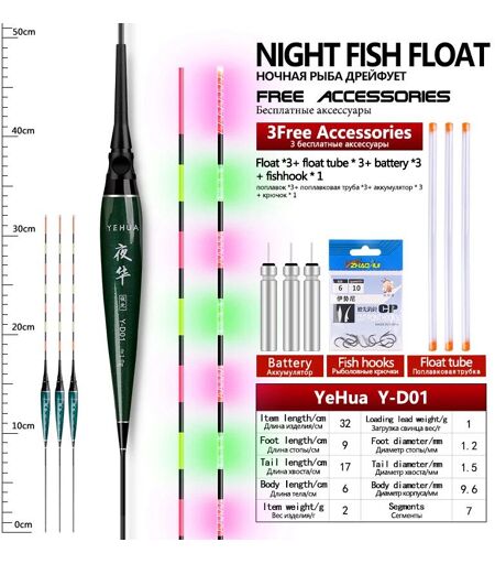 Flotteurs De Pêche Électriques,3 Cr425,3 Tubes Flottants,1 Sac De Crochets,Nano Bouée Lumineuse,Outils De Pêche,Lac,Rivière Boya,Matériel - Type Y-D01