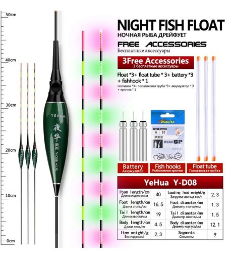 Flotteurs De Pêche Électriques,3 Cr425,3 Tubes Flottants,1 Sac De Crochets,Nano Bouée Lumineuse,Outils De Pêche,Lac,Rivière Boya,Matériel - Type Y-D08