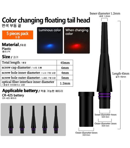 Tête De Flotteur De Pêche Avec Document Gonflé,Bouée Interchangeable,Bobber Électronique,Accessoires De Bricolage,Matériel De Pêche,5 Pièces - Type 1.2mm 425 Blue Red