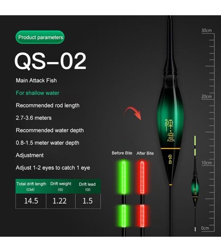 Flotteurs De Pêche Intelligents Électroniques,Rappel De Morsure De Poisson,Alarme,Flotteurs Shoes,Détection De Gravité Led,Changement De Document,Bouée Électronique - Type Qs O2