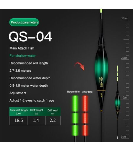 Flotteurs De Pêche Intelligents Électroniques,Rappel De Morsure De Poisson,Alarme,Flotteurs Shoes,Détection De Gravité Led,Changement De Document,Bouée Électronique - Type Qs O4