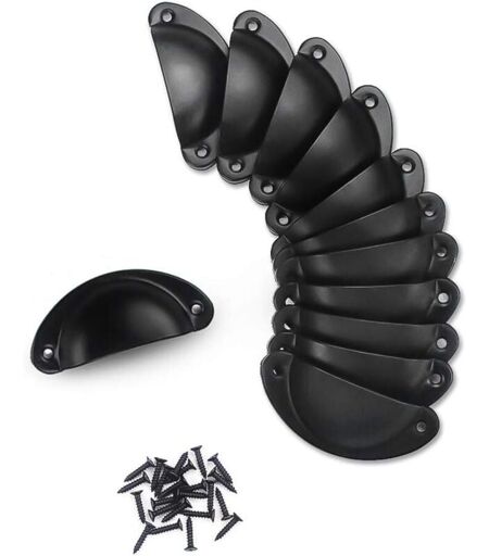 BEBUSINGOTO (noir) 12 pcs 81x35mm,Coquille Vintage Poignée,Cuisine Armoire Porte Poignées Pour Armoire, Tiroir, Porte,Poignées avec 24 Vis