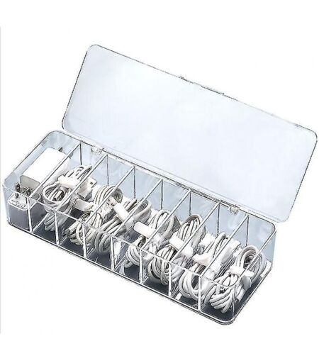 BEBUSINGOTO Boîte de rangement transparente anti-poussière pour accessoires électroniques, câbles, chargeurs, fils, 8 grilles.
