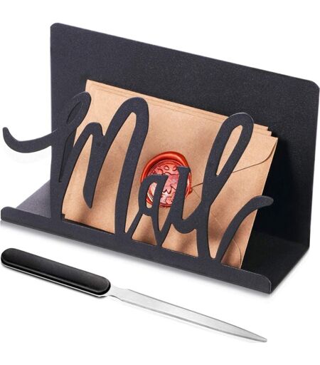 AHLSEN Porte-Courrier Trieuse de Lettres en Métal Noir Organisateur de Découpe de Courrier Support de Document de Lettre de Courrier avec Ouvre-Lettre pour