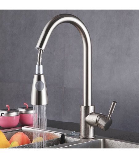 Le robinet de cuisine est en acier inoxydable et la surface est en nickel brossé facile d'entretien. Le corps principal du robinet de cuisine peut également être facilement tourné. Et la douchette peut être extractible facilement. Deux types de jets aux utilisations différentes répondent à vos diverses exigences. Paramètres de base du produit : - Matériau du corps du robinet : Laiton - Matériau du bec du robinet : acier inoxydable - Type de valve : Bobine en céramique - Connexion : G3/8 pouces - Longueur du flexible de douche extractible : 1,5 m - Longueur du tuyau de raccordement : 50 cm - Hauteur totale : environ 380mm - Pression d'eau : 0,5-7 bar recommandé - Diamètre du trou : 35 mm Contenu de livraison : - 1 x Robinet ...