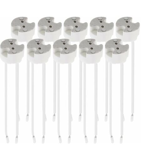 Description générale Les douilles GU 5.3 sont conçues pour un éclairage polyvalent, idéales pour les plafonniers et les lampadaires halogènes dans diverses pièces comme le salon ou la chambre. Spécifications techniques Kit de 10 douilles Tension d'entrée maximale : 25V AC Puissance maximale de la lampe connectée : 100W Compatibilité et accessoires Ces douilles sont compatibles avec les lampes LED ou halogènes de type GU5.3 (MR16) de tout fabricant. Installation L'installation est simple : il suffit d'insérer la lampe dans le culot et de tourner pour la fixer en place grâce à un ancrage sécurisé. Utilisation Utilisez les douilles GU 5.3 pour divers types d'éclairage, notamment dans les plafonniers et les lampadaires. ...