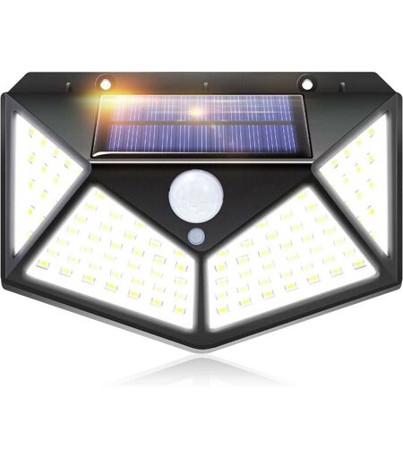 AOUGO Lampe solaire extérieure IOTSES 100LED 2200mAh 3 modes avec capteur de mouvement 270º des quatre côtés Projecteur étanche IP65 pour jardin, garage,