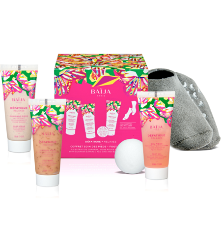 Baïja - Coffret Soin Des Pieds Défatiguant Bombe De Bain, Gommage Pieds, Masque Pieds, Gel Pieds & Paire De Chaussettes