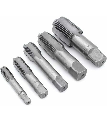 Matériel: Ce robinet à main est en acier, durable. Couleur: argent. Poids G1 / 8: 21g. Poids G1 / 4: 39g. G3 / 8: poids 63g. Poids G1 / 2: 127g. Poids G3 / 4: 230g. Type de filetage: BSP (55 degrés). Taille de filetage: G1 / 8, G1 / 4, G3 / 8, G1 / 2, G3 / 4. Peut forger le traitement de la fonte, des alliages, de l'acier, du métal et d'autres matériaux, présente des performances et une praticabilité élevées. Réparez les joints de tuyau avec des traces de rouille, de bris, de glissement et autres. Idéal pour les réparations automatiques et les pour lesquelles un filetage métrique est spécifié. Le forfait comprend: 5 Pcs BSP Tap. Convient pour l'usinage de filetage de tube G1 / 8, G1 / 4, G3 / 8, G1 / 2, G3 / 4 BSP. ...