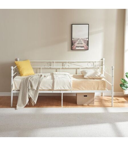 Lit Canapé 2 en 1 - Cadre de lit 1 Place avec Sommier - Banquette Lit Simple Ce lit métal est pratique et polyvalent car il combine les avantages d'un canapé et d'un lit une place. Adepte d'un style minimaliste, industriel ou d'une décoration affirmée, notre lit s'adaptera à vos vérandas, patios et salons d'extérieur. Agrémentez le lit canapé d'un matelas et d'accessoires pour le personnaliser à votre style. SPÉCIFICATIONS TECHNIQUES Taille du Lit Simple: 197.5 x 93 x 95.5 cm (L * l * H), convient aux matelas de 90 x 190 cm Lit en métal stable avec une structure durable Espace de stockage de 33 cm sous le canapé-lit Convient pour le salon, la chambre, l'hôtel et le bureau Pieds antidérapants pour éviter le bruit et protéger le sol ...