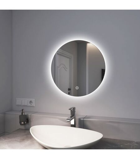 EMKE Miroir de salle de bain rond LED avec rétro-éclairage sans cadre Interrupteur tactile - Diamètre 50cm Lumière Blanche Froide