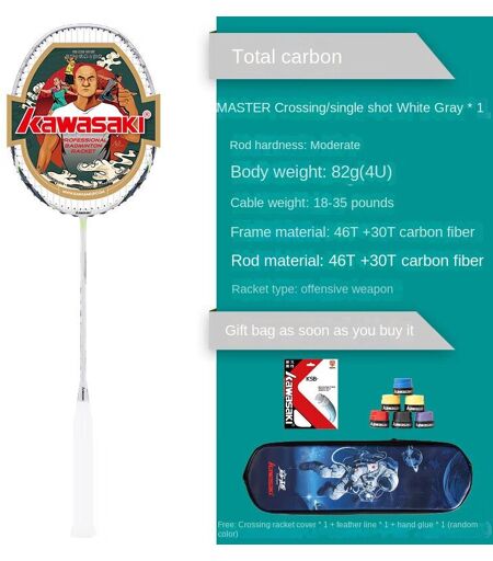 Kawasaki-Raquette De Badminton Master Cross Space,Entièrement En Carbone,Entraînement De Compétition,Tir Unique,Haut De Gamme,Hommes Et Femmes - Type White-With String