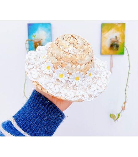 Chapeau À Fleurs En Dentelle Pour Animaux De Compagnie,Pare-Soleil Pour Chat Et Chien,Vêtements De Paille Pour Animaux De Compagnie,Accessoires Pour Chiots,Petits Chapeaux Pour Chie - Type Yellow-S