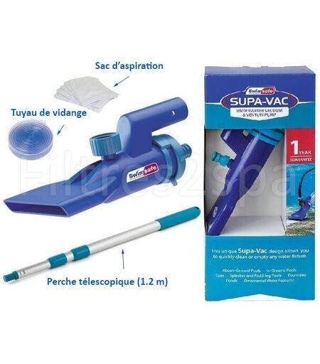 Permet de nettoyer ou vider n'importe quel bassin aquatique. Piscine hors sol ou enterrée – Spas ou bassins – Inclus manche réglable en aluminium ...