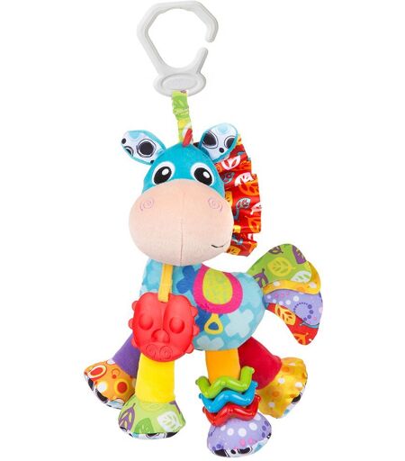 Cette jolie peluche très colorée amusera de longs moments bébé grâce à ses différentes matières, ses pattes qui crépitent et un grelot dans l'une d'elles.Son anneau de dentition pour soulager ses gencives. Peluche d'activité très complète qui s'attache partout poussettes, landaus,lits... ...
