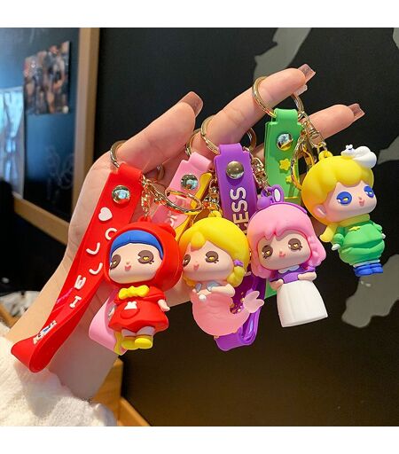 2pcs Conte De Fées Monde Porte-Clés Neige Blanche Poupée Voiture Porte-Clés Couple Sac Pendentif