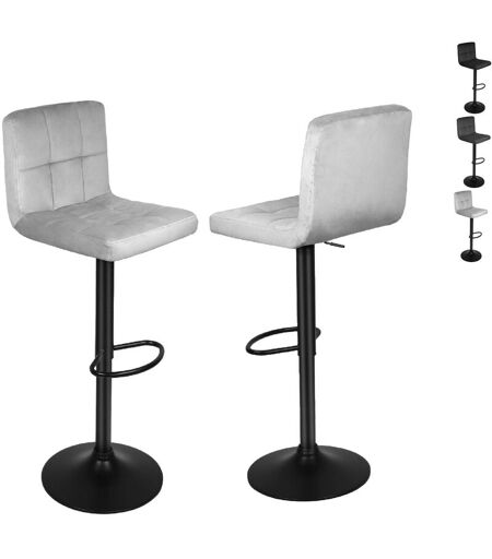 SKECTEN Bar, Lot de 2 tabourets surface en velours, hauteur réglable, chaise de cuisine pivotante avec dossier et repose-pieds, gris clair