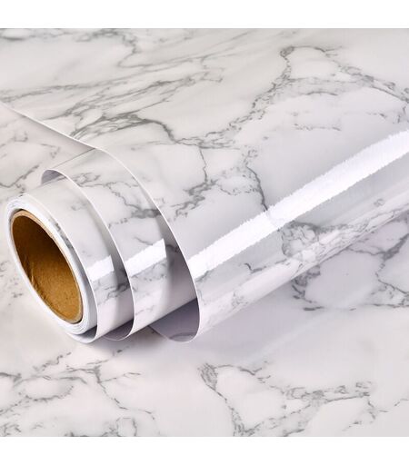 Irisfr - Adhésif Marbre Blanc et Gris Clair de 40CM3M Papier Peint Effet Marbre Blanc Gris pour Cuisine Salon Chambre Plan de Travail Rouleau Adhésif
