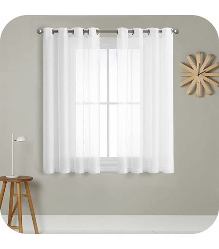 Rideau Voilage Semi-Transparent Court Avec Oeillets En Aspect Lin Stores Rideaux Foulards Pour Salon Chambre Chambre D'enfant Blanc 140Ṫ160cm (HṪL)
