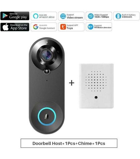 Sonnette video intelligente 1080P, interphone video WiFi, camera Audio bidirectionnel, fonctionne avec Alexa Echo Show Google Home - Tuya