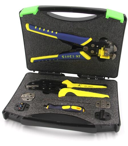Cet outil de sertissage de fil professionnel avec pince à sertir auto-réglable et pince à dénuder est pratique, efficace et sans danger pour les noyaux de câble. Il est facile à utiliser, il suffit de tenir la poignée et de la manipuler une fois pour serrer avec succès le fil et les borniers. Spécifications : Modèle : JX-D5301S Matériau : acier à haute teneur en carbone + alliage Couleur : jaune + noir Terminaux et bornes adaptés Plage de sertissage de la pince à sertir : JX 1601-01 : Nids de code couleur + bornes isolées 24-14 AWG (0,25-2,5 mm²) JX 1601-06 : Bornes d'extrémité de cordon 24-10 AWG (0,25-6,0 mm²) JX 1601-08 : Connecteur à barillet ouvert non isolé 26-16 AWG (0,14-1,5 mm²) JX 1601-10 : Connecteur à barillet ouvert non isolé 28-18 AWG (0,1-1,0 mm²) JX 1601-2546 : Bornes de connecteur solaire MC4 Français : 14-10 AWG (2,5-6,0 mm²) Plage de dénudage de la pince à dénuder automatique : 24-10 AWG (0,2-6,0 mm²) Taille de la pince à sertir : environ 190 x 80 x 20 mm/7,48 x ...
