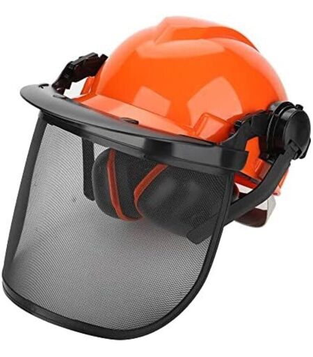 Casque Forestier de Sécurité pour Les Travaux de Type Forestier avec Protections Auditives et Visière en Maille d&39acier, Orange