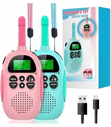 Rotationnel-Talkies Walkies Enfants, VOX Talkie Walkie Rechargeable avec Radio à 2 Voies 16 Canaux, Lampe de Poche LCD Rétro-éclairée, 3 KM pour