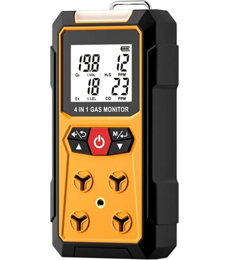 SUNXURY Détecteur de Fuite de Gaz, 4 en 1 (H2S, ex, O2, co) Moniteur de Sécurité Fiable pour la Maison et Le Lieu de Travail avec Détection Précise,