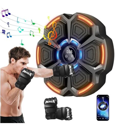 Machine de boxe musicale, Smart LED, Bluetooth, avec gants de boxe, cible de boxe murale, 9 modes de vitesse et mode de comptage pour adultes et