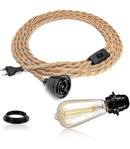 Soldes Lustre Corde de Chanvre 4,5m Câble Suspension Luminaire Compatible avec les abat-jour,Douille E27 avec Interrupteur,DIY Lampe Suspendue