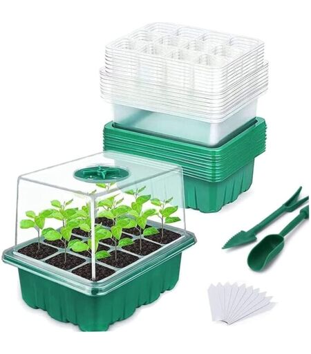 Soldes Lot de 10 plateaux de semis, kit de démarrage de semis, propagateur de plantes avec couvercles surélevés, plateau de germination de graines à