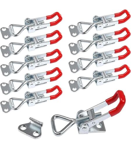 [Matériau durable] Ce verrou de charnière métallique est fabriqué en acier inoxydable 304, résistant à la corrosion et à la rouille, durable pour une utilisation à long terme, avec une poignée en plastique souple. [FACILE À INSTALLER] Fixez le verrou de charnière à l'aide de vis. La distance de montage est réglable et les vis peuvent être ajustées pour serrer ou desserrer selon les besoins. [Force de serrage maximale] 100kg/220lbs, plus fort que la plupart des loquets de porte sur le marché pour fermer en toute sécurité les armoires, les portes et plus encore. [Largement utilisé] Le loquet coudé à dégagement rapide est parfait pour les armoires, les portes, les boîtes, les caisses sans serrures ou poignées cassées, les couvercles de fumeurs, les gabarits de fabrication, les outils de fixation pour sécuriser les pièces mobiles. [Distance de montage réglable] L'étanchéité peut être réglée en serrant ou en desserrant la vis, la conception autobloquante empêche le verrou de s'ouvrir ...