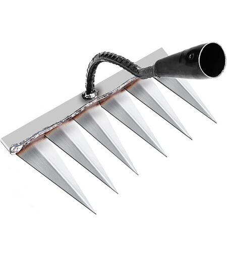 Robuste : acier anti-mauvaises herbes de qualité industrielle fabriqué en acier au manganèse à haute teneur en carbone. Il est solide et durable et a des dents extrêmement tranchantes. Bords renforcés et reforgés pour une plus grande durabilité et une plus longue durée de vie. Ne pas utiliser contre de grosses pierres. Aide au jardinage : vous pouvez facilement utiliser ce râteau en métal pour le jardinage. Il peut être utilisé avec une poignée classique parfaitement ajustée pour rendre votre travail de désherbage plus facile et plus efficace. Large gamme d'applications : ce râteau de jardin en métal a des dents tranchantes pour une large gamme d'applications. Il peut être utilisé pour désherber les mauvaises herbes dans le jardin, ameublir le sol, semer des graines, niveler le sol ou tirer des sillons. 5 dents pour la plupart des besoins de jardinage. Facile à utiliser : ce râteau de jardin en acier au carbone a un design simple qui le rend plus facile à utiliser dans le jardinage, ...