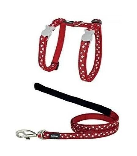 Laisse/Harnais Pour Chat Rouge - Red Dingo - Tour De Cou 21 À 35 Cm - Étoiles Blanches
