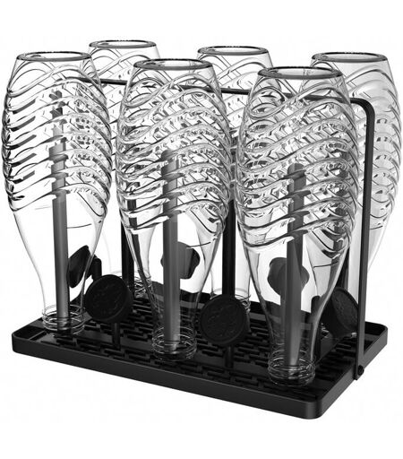 RAINSWORTH Range Bouteille pour SodaStream, 6 Trous Supports d'Égouttage Noir, Égouttoir en Acier Inoxydable pour 6 Bouteilles, y Compris Gant en Silicone,