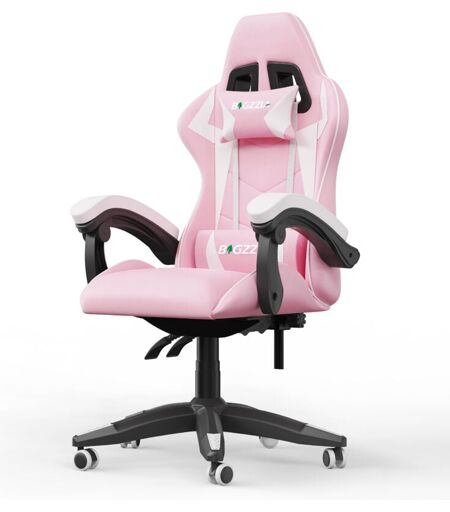 Bigzzia - Chaise Gaming Ergonomique Racing - avec Réglage de Hauteur, Repose-tête et Soutien des Lombaires - pu Cuir - Rose