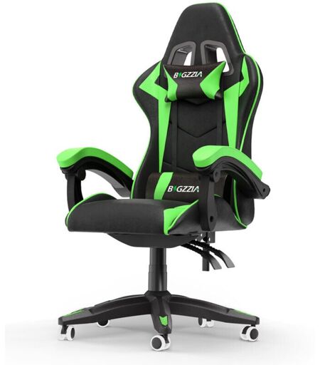 BIGZZIA Chaise Gaming Ergonomique Racing - avec Réglage de Hauteur, Repose-tête et Soutien des Lombaires - PU Cuir - Vert