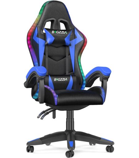 Bigzzia - Chaise Gaming avec éclairage led Effets, Fauteuil Gaming led avec Lombaire&Appui-Tête Appui, Bleu