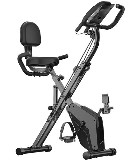 Ce vélo d'appentement pliable magnétique est le compagnon parfait pour vos entraînements à domicile ! Avec son système de résistance magnétique silencieux et 8 niveaux réglables, adaptez facilement l'intensité de votre effort. Profitez des câbles de résistance pour sculpter simultanément le haut du corps pendant le pédalage. Son écran LCD clair affiche en temps réel votre vitesse, distance, calories brûlées et fréquence cardiaque grâce au capteur intégré. Pratique et gain de place grâce à son design pliant, ce velo d'Appartement magnétique convient à tous les niveaux sportifs. Idéal pour renforcer votre cardio, tonifier l'ensemble musculaire et garder la forme depuis chez vous, même dans les petits espaces ! ...