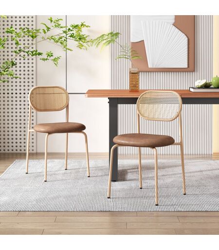 Modfu - Chaises de salle à manger avec dossier, design en rotin, pieds en métal, salon/salle à manger, pu, marron, 2 pièces