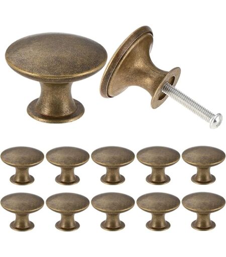 SUNXURY Lot de 24 boutons de placard vintage chic en laiton antique pour porte de meubles de cuisine ronds de 30 mm