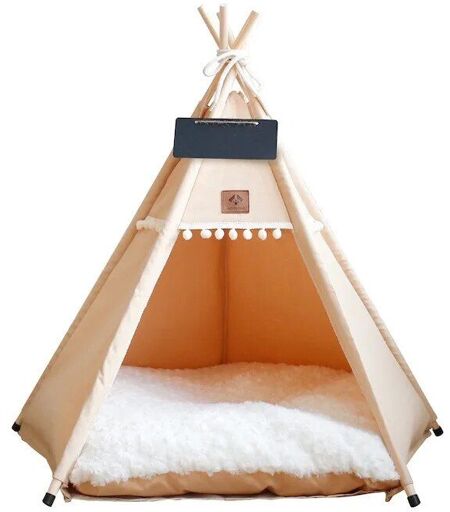 Tente D'intérieur Pour Animaux De Compagnie,Lit Avec Coussin Épais Pour Chiens Et Chats,Couchage Profond,Toile Douce Indienne,Chiot,Tipi,Fournitures Pour Animaux De Compagni - Type Khaki-40x40x50cm