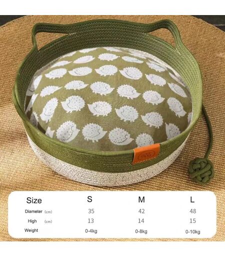Lit Rond En Rotin Tissé À La Main Pour Animaux De Compagnie,Panier De Refroidissement Pour Chaton,Ulen Coton,Paniers À Gratter Japonais,Été - Type Green Cat Bed Set-S