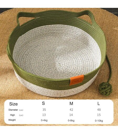 Lit Rond En Rotin Tissé À La Main Pour Animaux De Compagnie,Panier De Refroidissement Pour Chaton,Ulen Coton,Paniers À Gratter Japonais,Été - Type Green Cat Bed-M