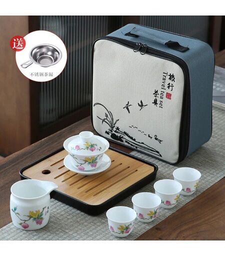 Service À Thé De Voyage Alberoiserie,Porcelaine,Service À Thé Kungfu Chinois,Théière Portable,Tasse À Thé,Infuseur À Thé,Emballage De Sac De Voyage - Type Travel Bag Packaging #O