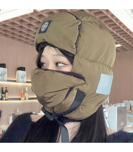 Cagoule De Ski Coupe-Vent Pour Hommes Et Femmes,Chapeaux De Bombardier Rembourrés En Duvet,Casquettes Russes Ushanka Avec Poignées De Masque,Chapeau De Pilote À Oreillettes Amovibles,Hiver,