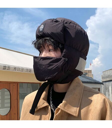 Cagoule De Ski Coupe-Vent Pour Hommes Et Femmes,Chapeaux De Bombardier Rembourrés En Duvet,Casquettes Russes Ushanka Avec Poignées De Masque,Chapeau De Pilote À Oreillettes Amovibles,Hiver,
